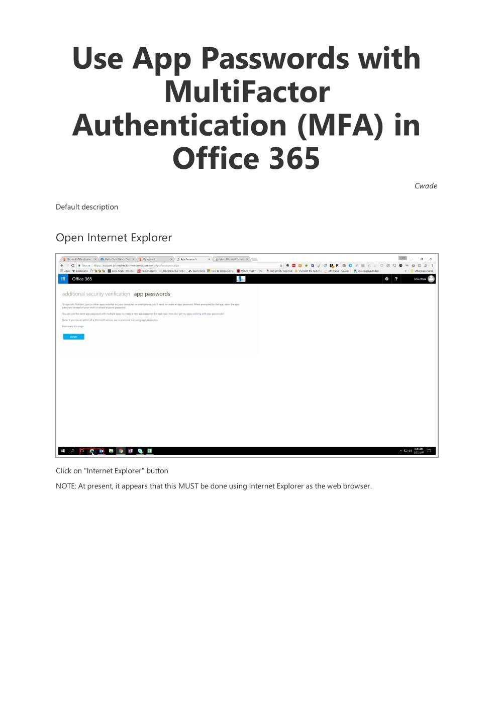 Create Passwords for Apps that don't use MultiFactor Authentication (MFA) in Office 365
