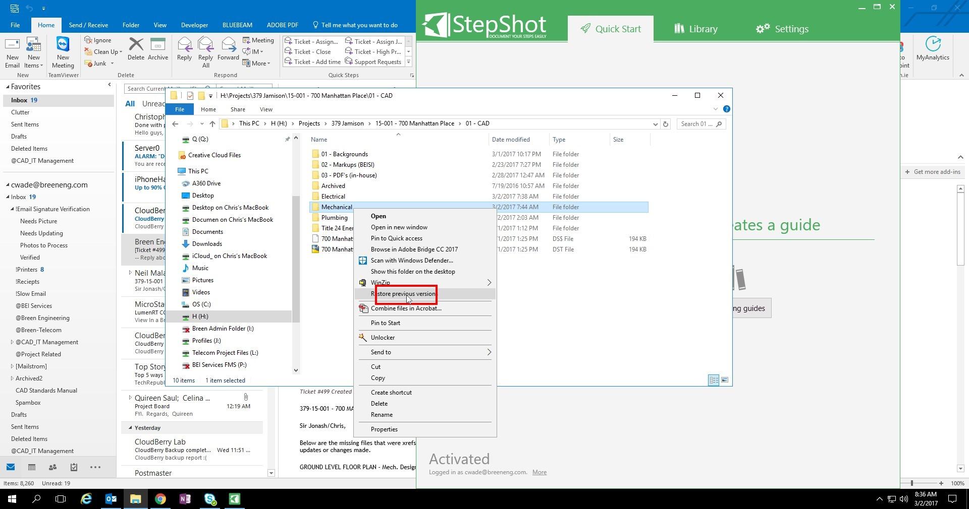 - Right click on the folder that contains the file(s) that you want to get the previous versions of or restore.