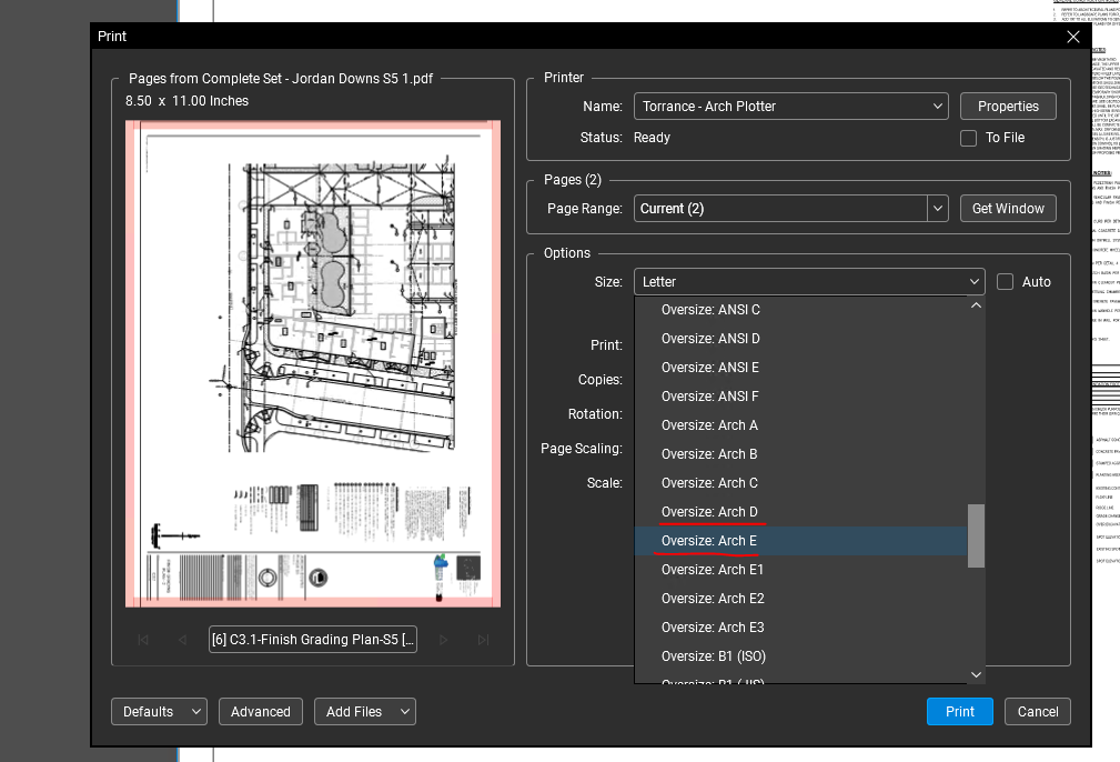 2. Choose Paper size: Arch D for Half size and Arch E for Fullsize
