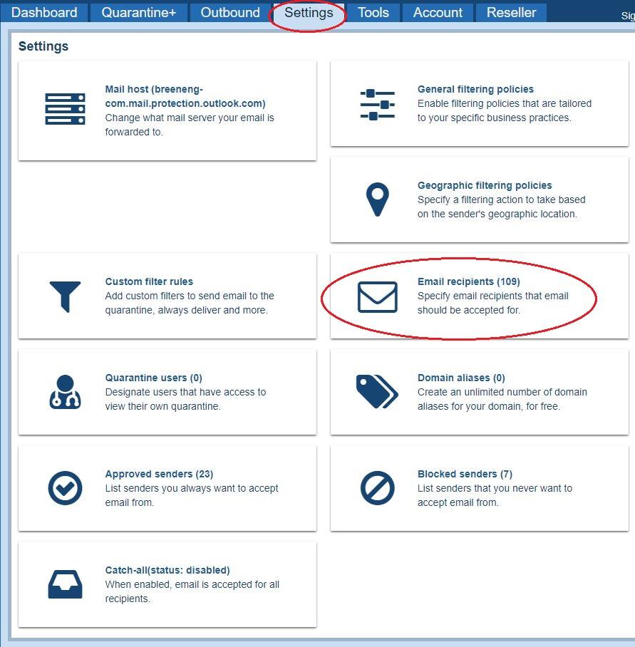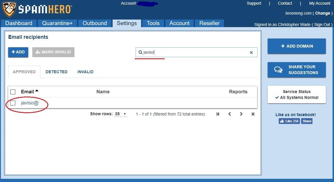 1. Login SpamHero and make sure to choose the right domain for the email you are about to add.