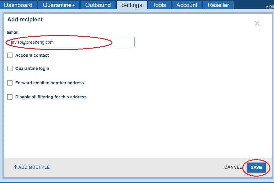 4. Once you input the email, you don't have to select anything. Just click SAVE.