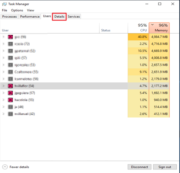 3. Under Details choose the application that's having high CPU usage. Right Click and open "Set affinity"