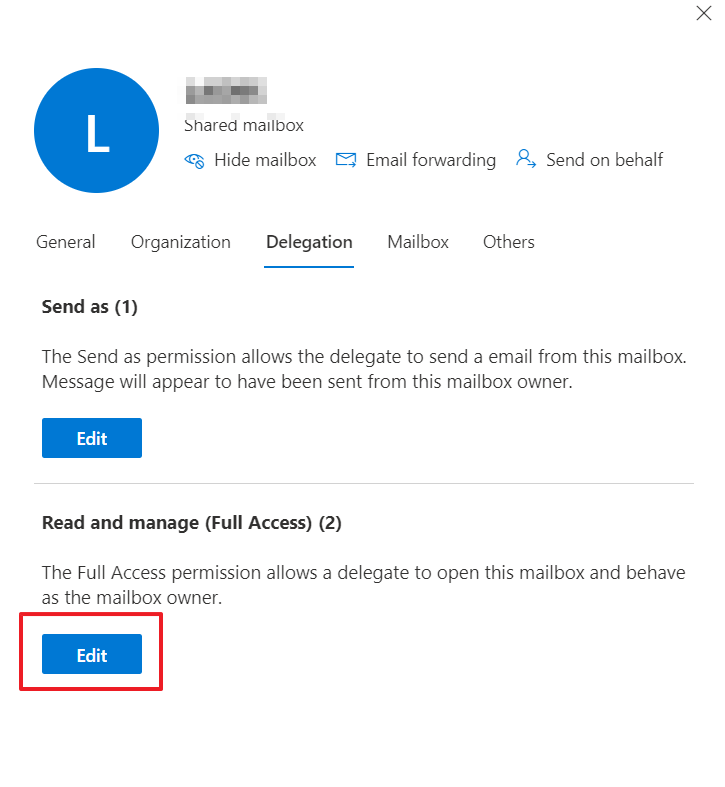 Delegate permission to a shared mail box