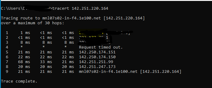 Tracert will then begin sending packets to the target IP address and display the results in the command prompt window.