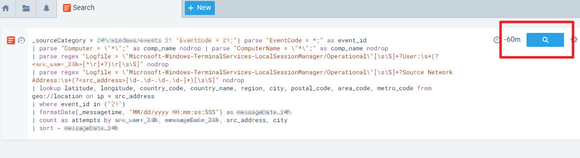 | parse regex "Logfile = \"Microsoft-Windows-TerminalServices-LocalSessionManager/Operational\"[\s\S]+?User:\s+(?[^\r]+?)\r[\s\S]" nodrop