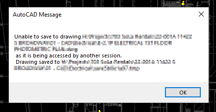 Unable to save drawing (accessed by another session)
