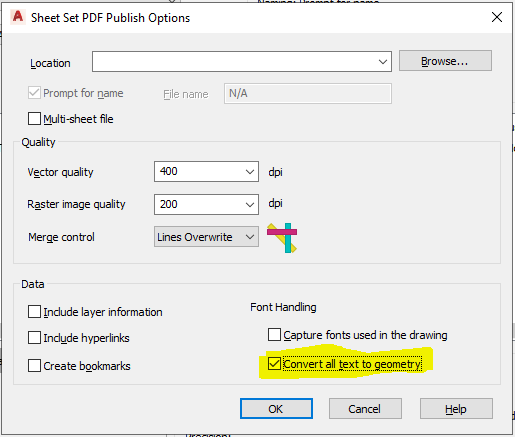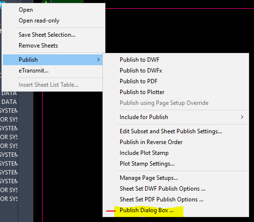 3. Select Sheet Set Publish Options.. a dialog box will appear