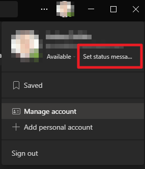 - Go to your profile pic at the top of Teams and select Set status message to view your options.
