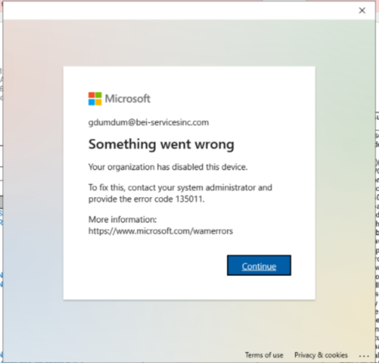 Microsoft Login Error