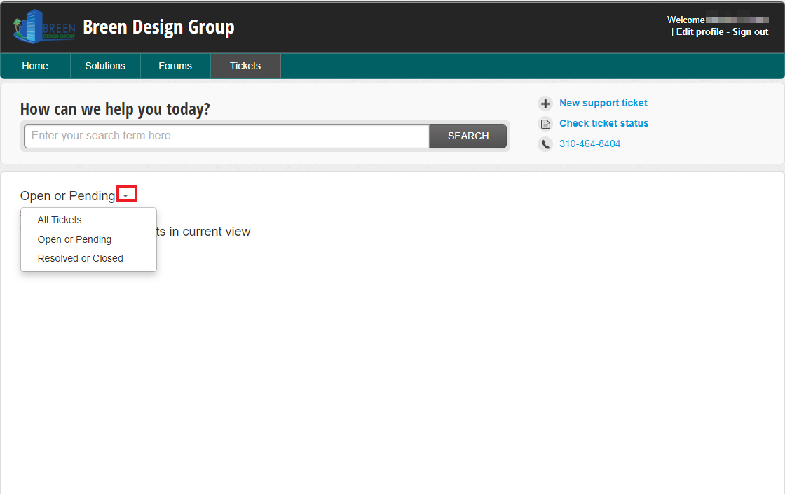 4. Open the drop down arrow to select the status of the ticket you wish to open.