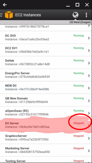 - Find your server in the list, if it says Running, please take a screenshot and send a ticket about the server not running. If it says Stopped, click on the server.
