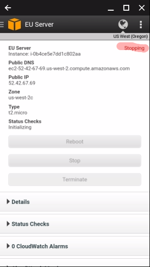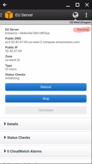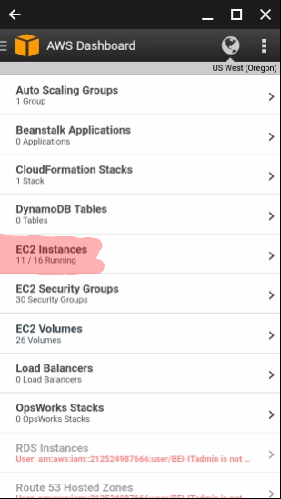 If you have previous setup the AWS console app, then when you open it on your phone, it will look like this: