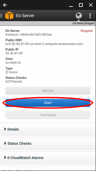 - After you are done using the server, please turn off the server by following all of the steps above, except instead of clicking Start, click Stop.