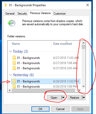 Note: Also remember that Windows create previous versions whenever there were changes made within the selected folder/\. but it has limitation of 1 month of previous versions.